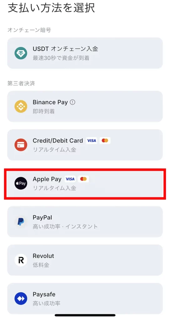 支払い方法で「Apple Pay」を選択します。