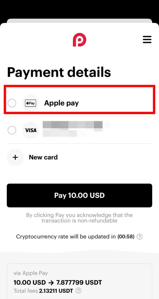 「Payment details」で「Apple Pay」が選択されていることを確認します。