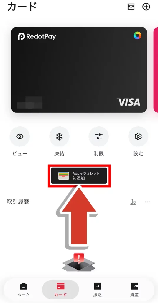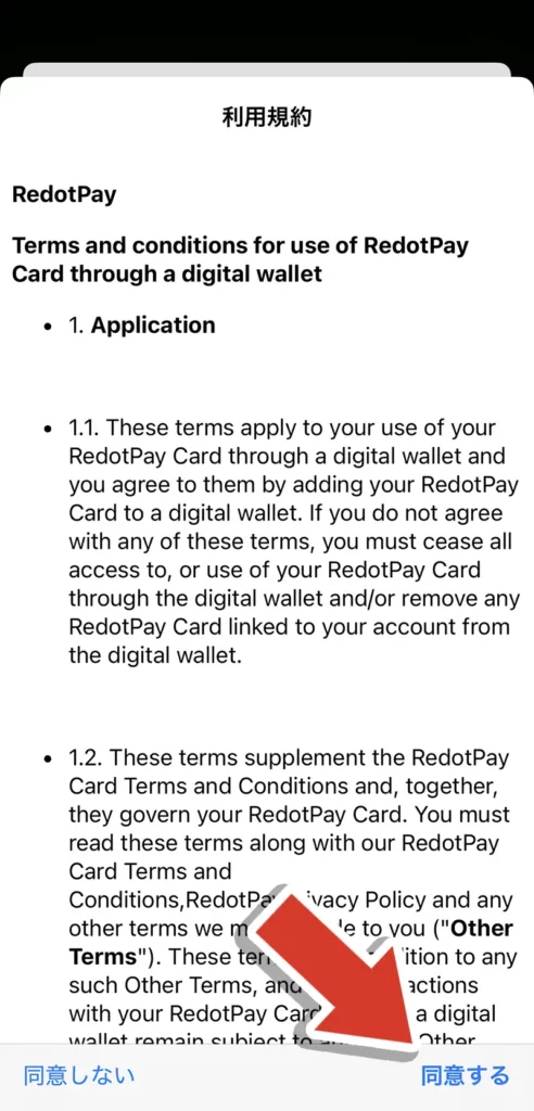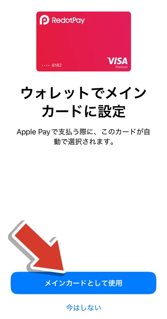 Redotpayカードをメインカードとして使用する場合は、「メインカードとして使用」をタップします。