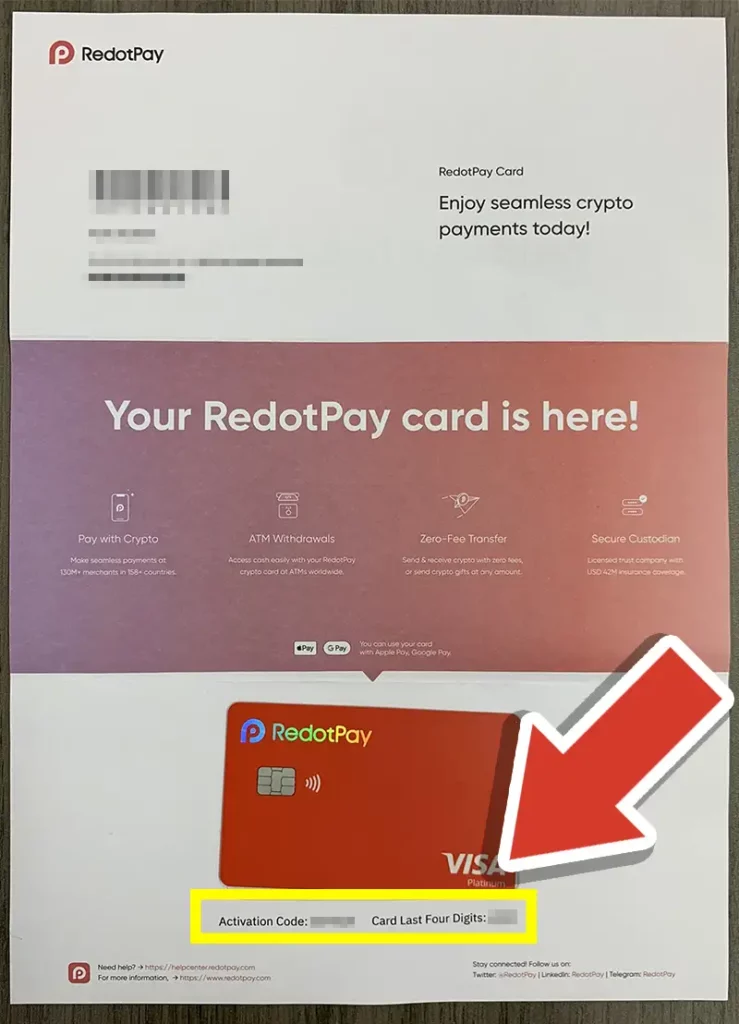 郵送されてきたカードの台紙に Activation Code が記載されているので、Card Last Four Digits(カードの下4桁)を確認し、対応するカードから「今すぐアクティブ化」をタップします。
