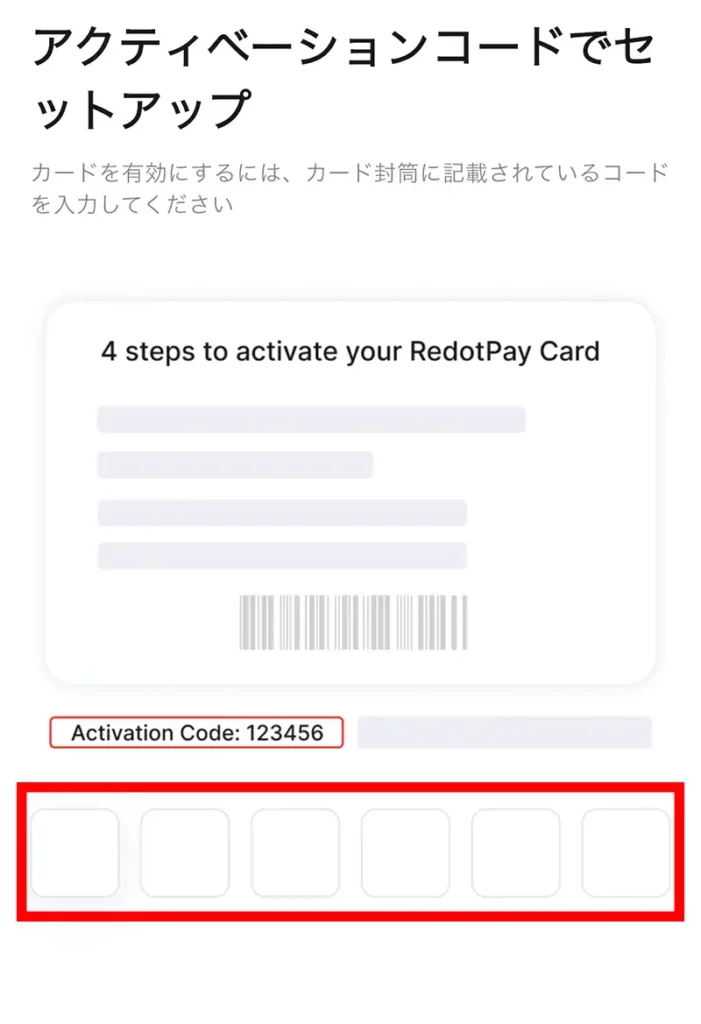 アクティベーションコードを入力すると、カードの有効化が完了します。