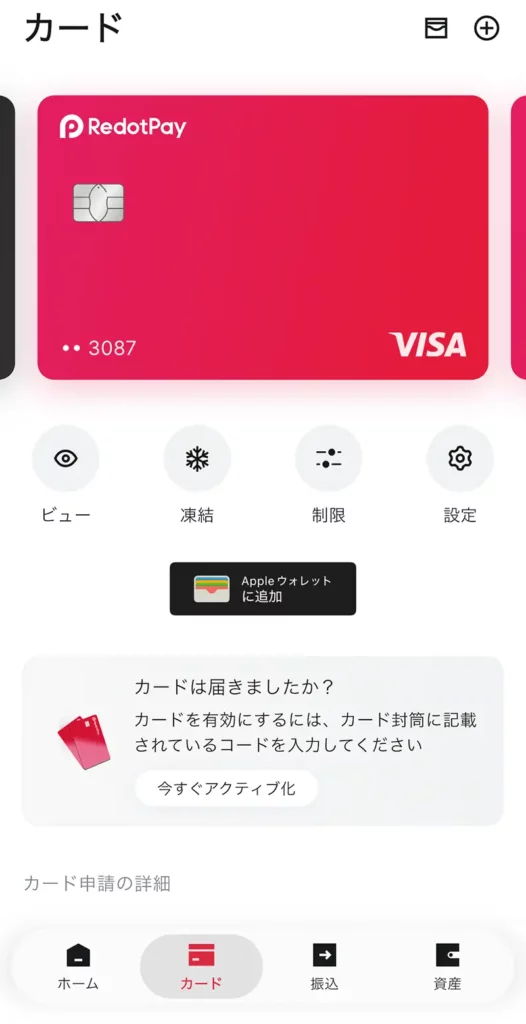 以降、カードの発行状況はこのカード画面で確認することができます。