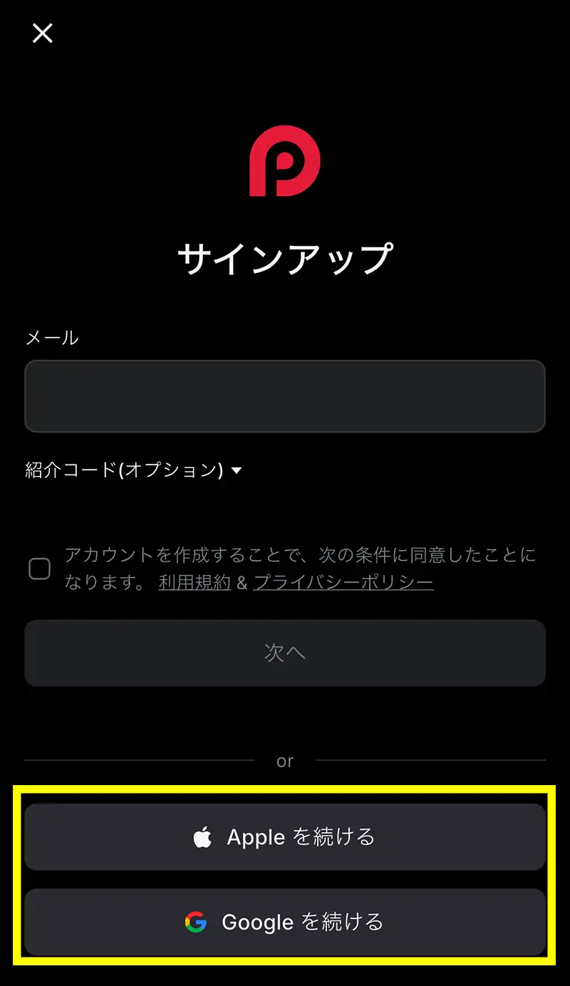 ※AppleアカウントまたはGoogleアカウントを使って登録することも可能です。